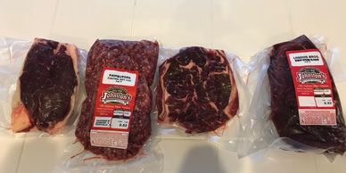 Johnstone Meat Market will dry age your beef for 21 days, and at the end of that they will cut it up to your specifications and vacuum seal each portion and place them in cardboard freezer boxes. Your meat is individually packaged and labeled. Johnstons will be an additional fee of $300 - $350 per half cow for processing, aging, cutting, packaging. The price is based on hanging weight and any additional special costs..